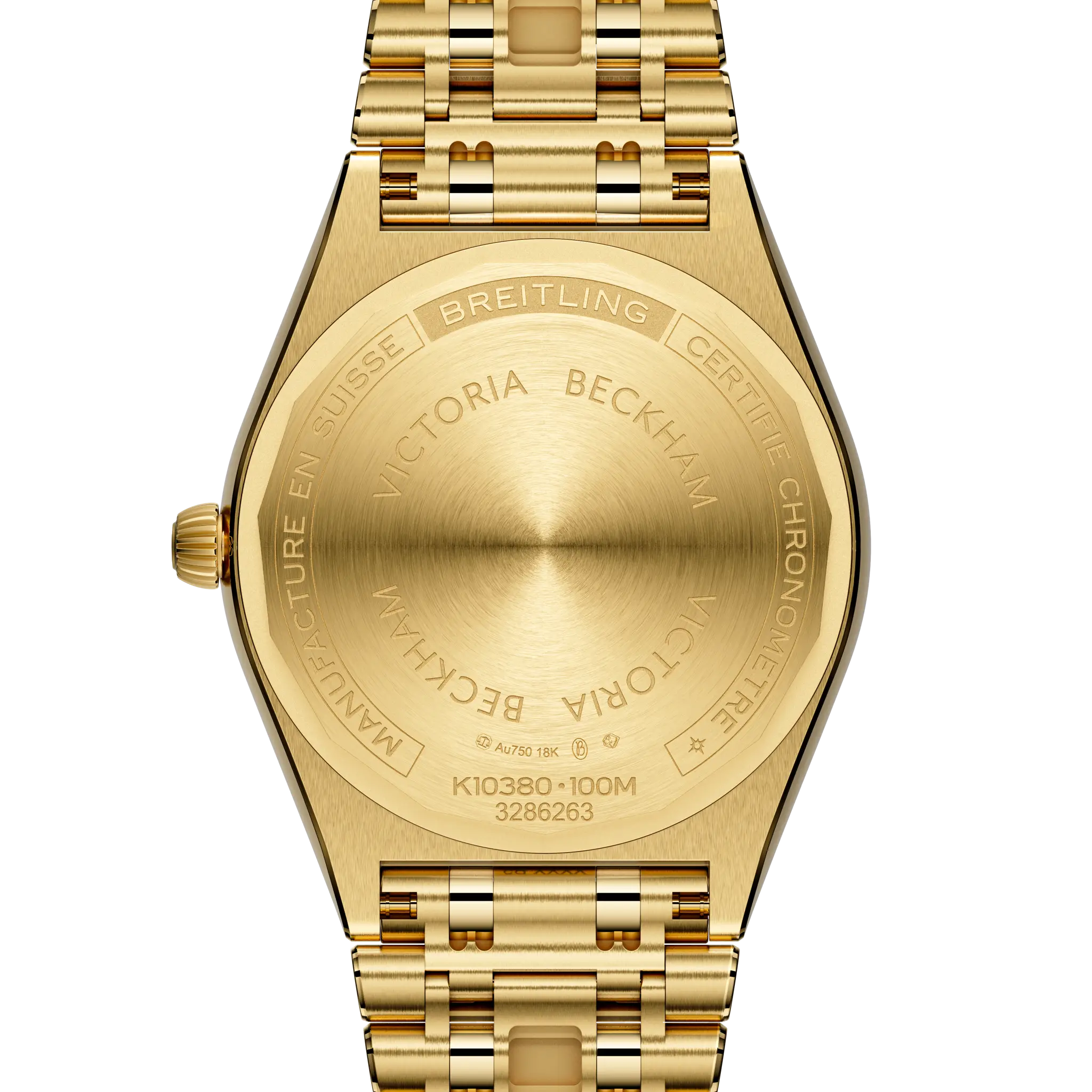 • Breitling Chronomat Automatic K103801A1C1K1 36mm Blue Dial Uni-Directional Ratcheted Bezel 18k Yellow Gold Unisex Watch