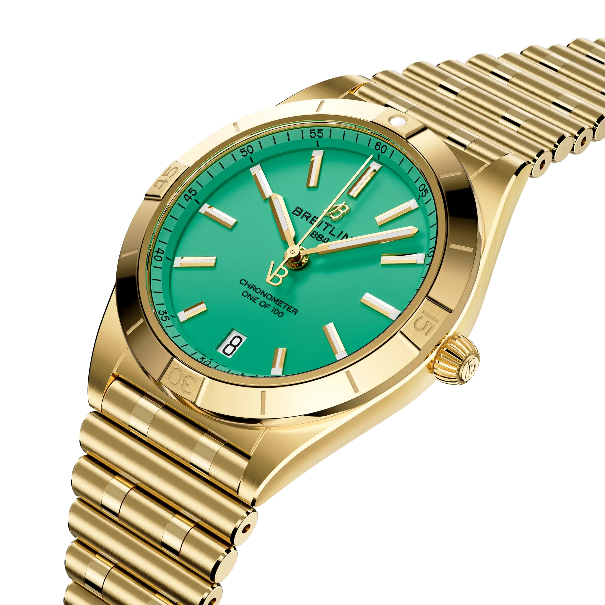 Breitling Chronomat Automatic K103801A1L1K1 36mm Greenish Turquoise Dial Uni-Directional Ratcheted Bezel 18k Yellow Gold Watch