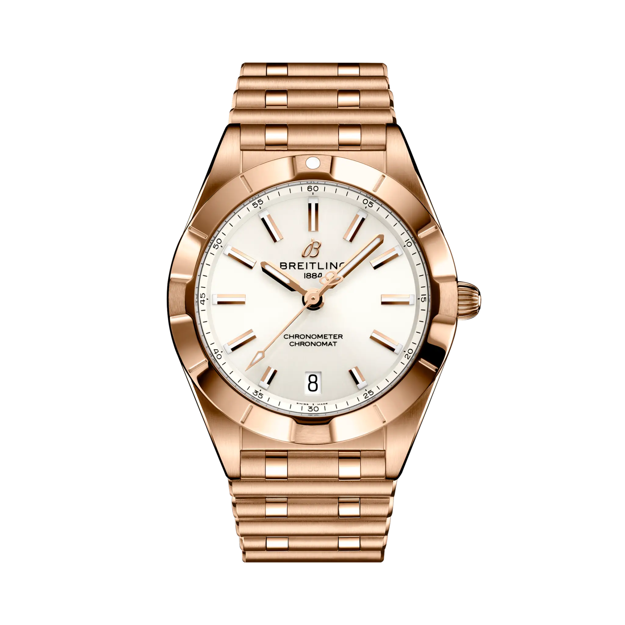 Breitling Chronomat Automatic R10380101A1R1 36mm White Dial Uni-Directional Ratcheted Bezel 18k red gold Watch