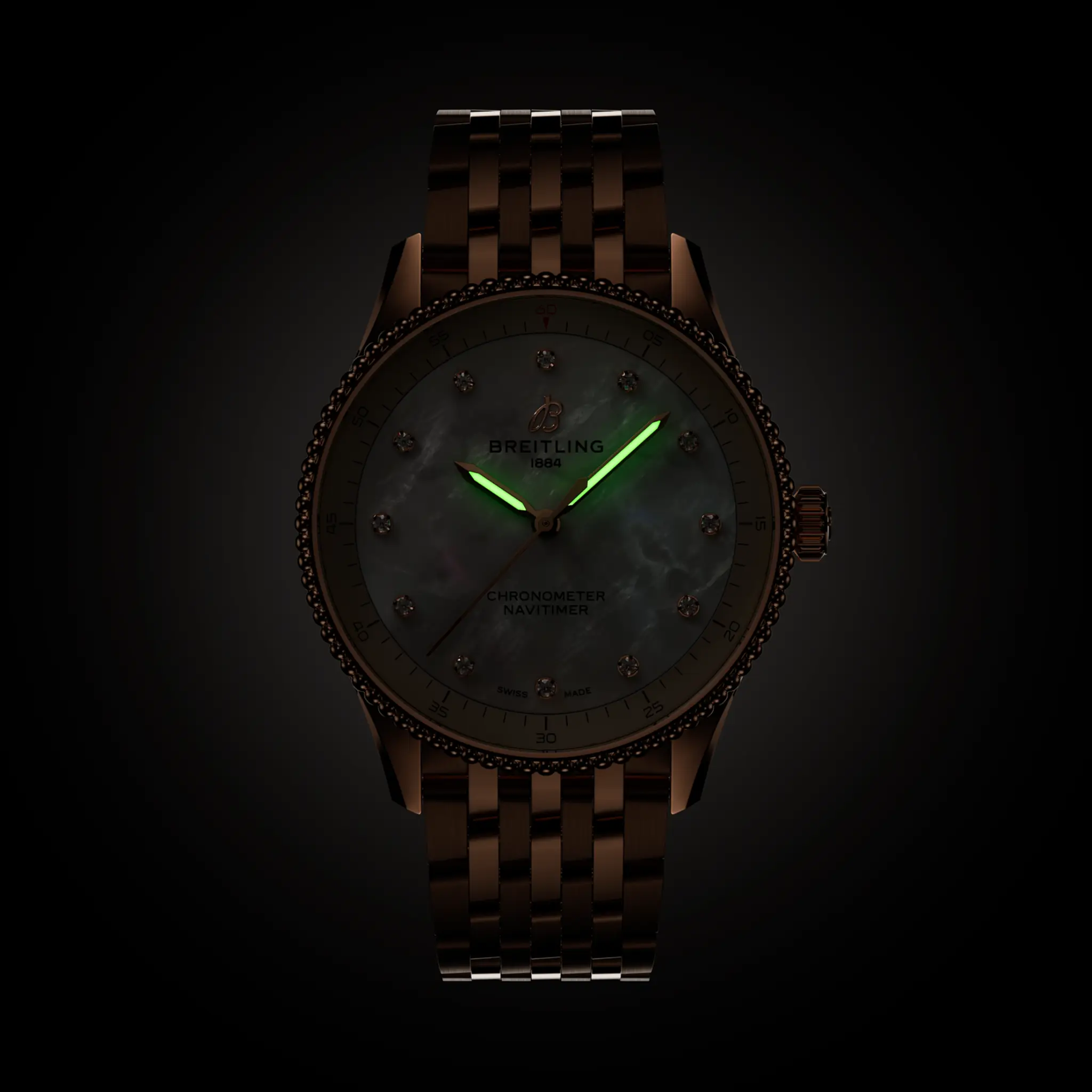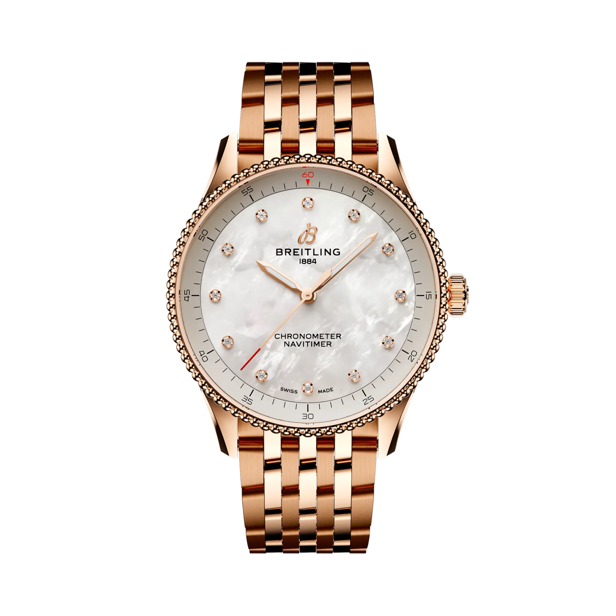 Breitling Navitimer 32 Mother of Pearl Diamond Dial 18K Rose Gold Women's Watch R77320E61A1R1