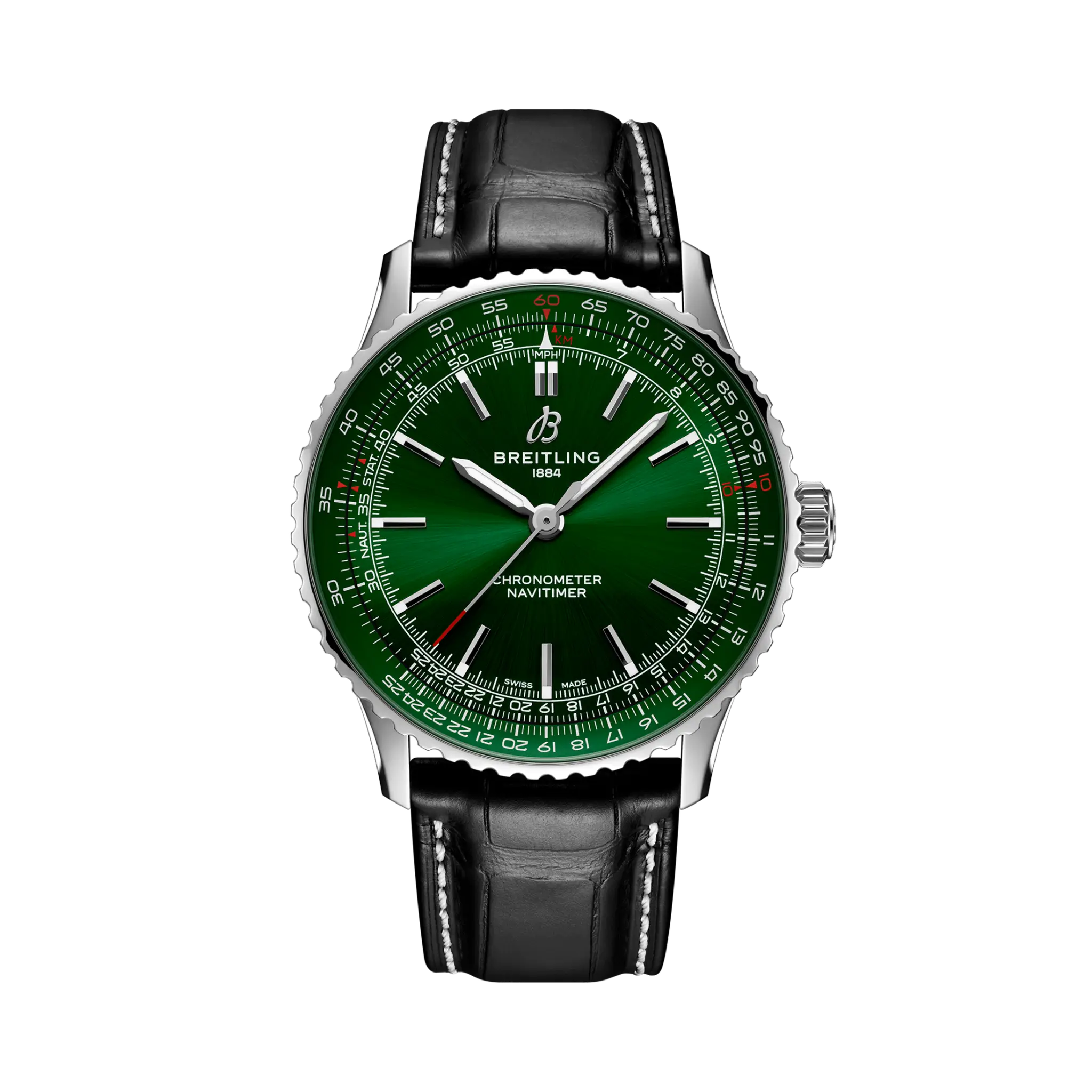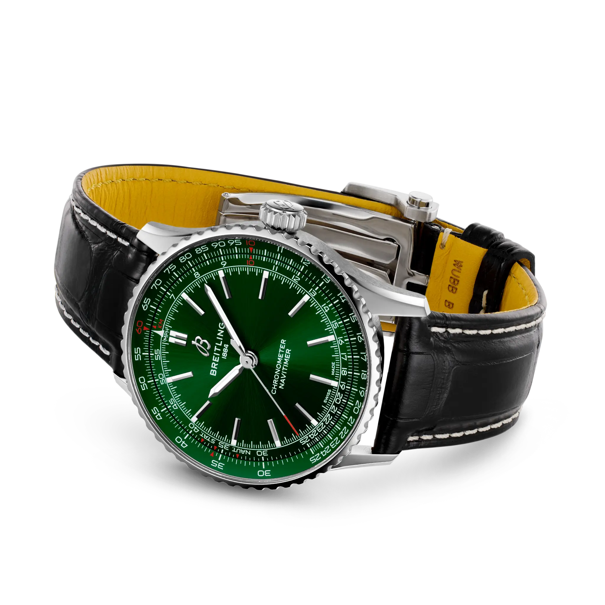 Breitling Navitimer Automatic 41 Green Dial Leather Strap Men's Watch A17329371L1P1