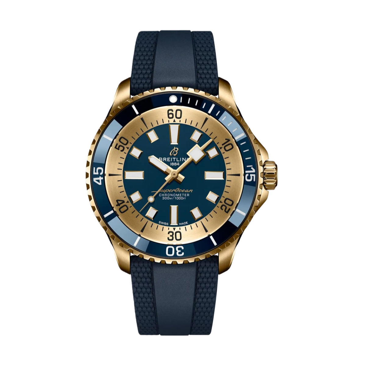 • Breitling Superocean Automatic 44 N173761A1C1S1 Blue Dial Uni-directional Bezel Bronze Case with Blue Rubber Strap Watch