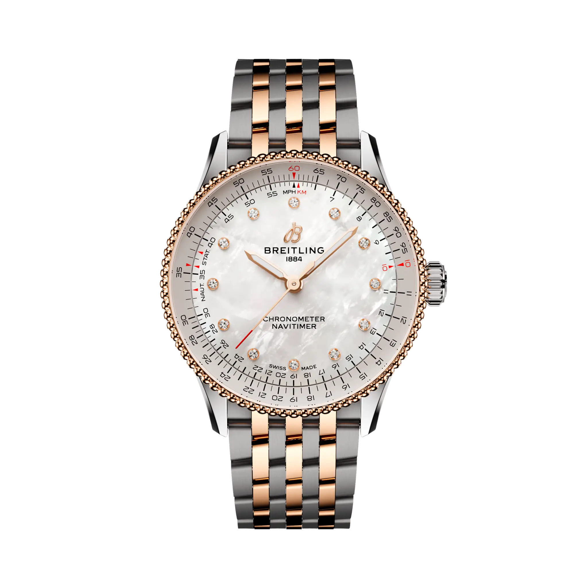 Breitling Navitimer Automatic 36 Mother of Pearl Diamond Dial Rose Gold & Steel Unisex Watch U17327211A1U1