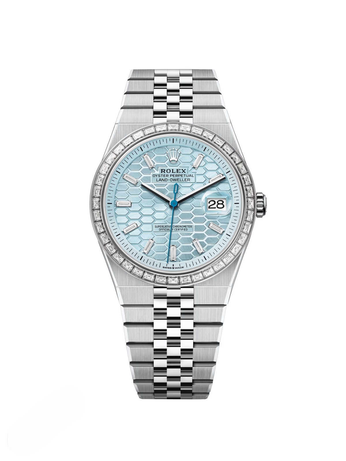 | Dial Color: | Ice blue, honeycomb motif set with diamonds |