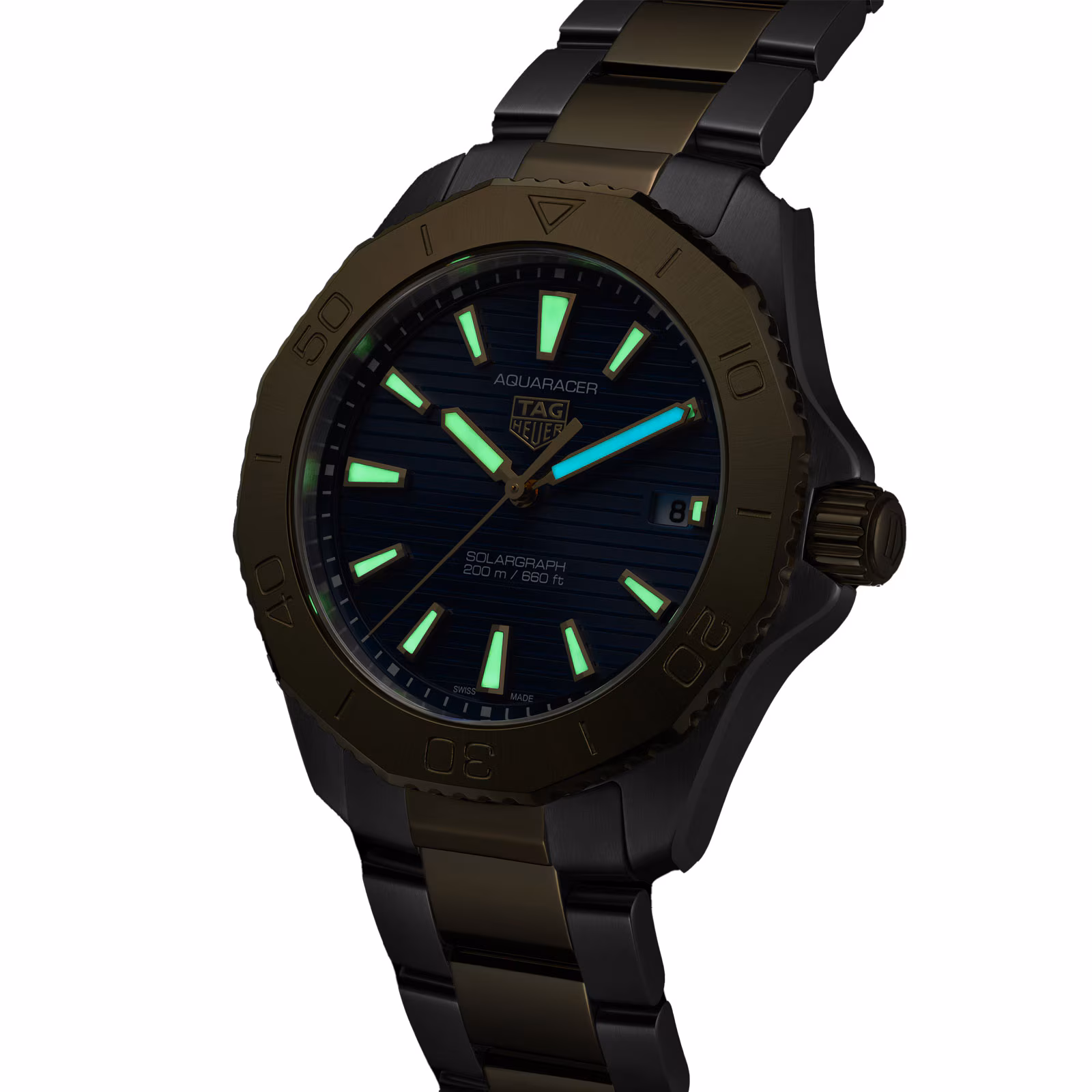 The TAG Heuer Aquaracer Professional 200 Solargraph Two-Tone (40mm) combines the precision of the Solargraph technology with the elegance of 18K 2N gold accents. Featuring a two-tone bracelet and a robust steel case, this versatile tool watch is the perfect companion to endure any conditions with style.