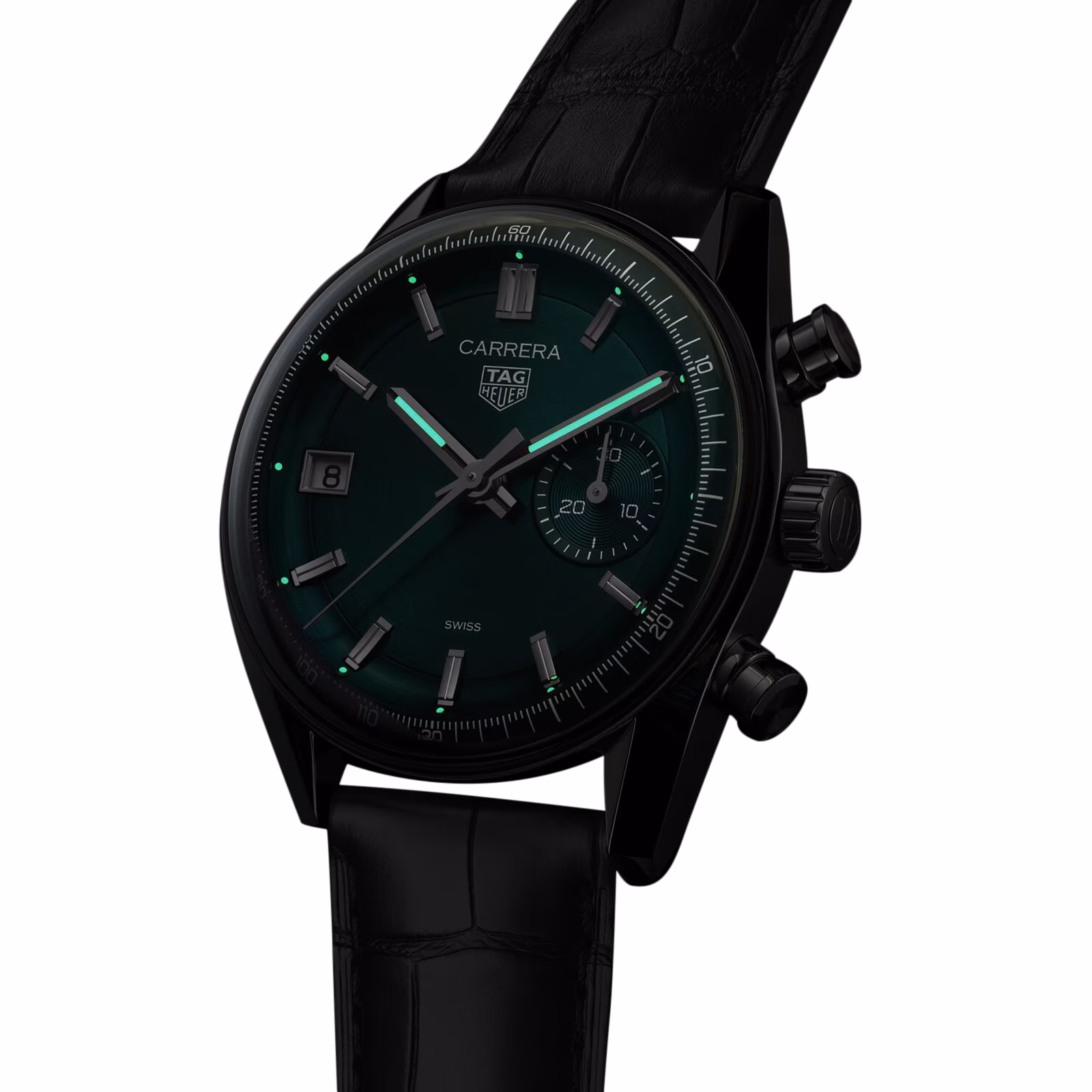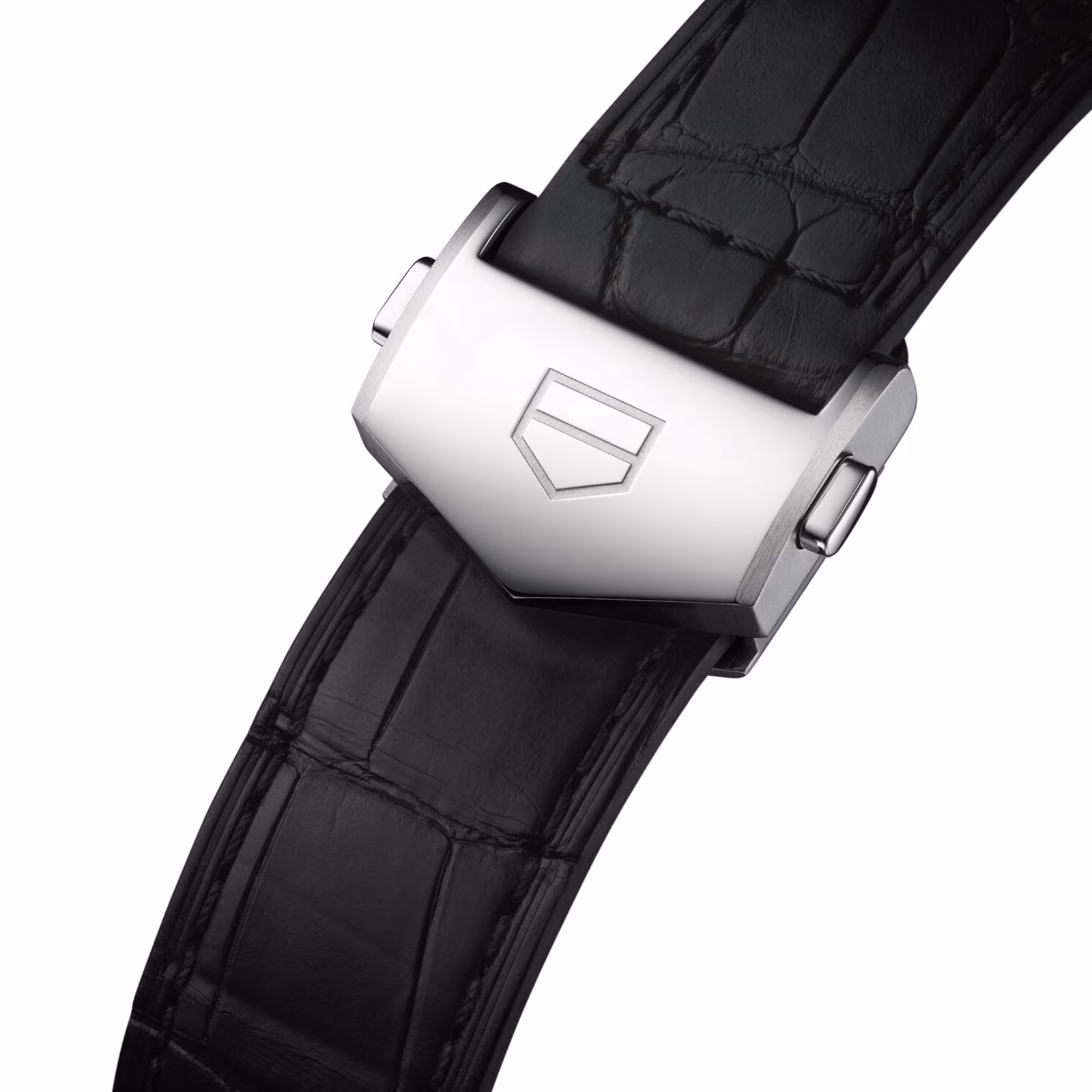 Encapsulating the daring spirit of the collection's 60th anniversary, this Carrera model features a 39mm steel case paired with a luxurious black alligator leather strap.