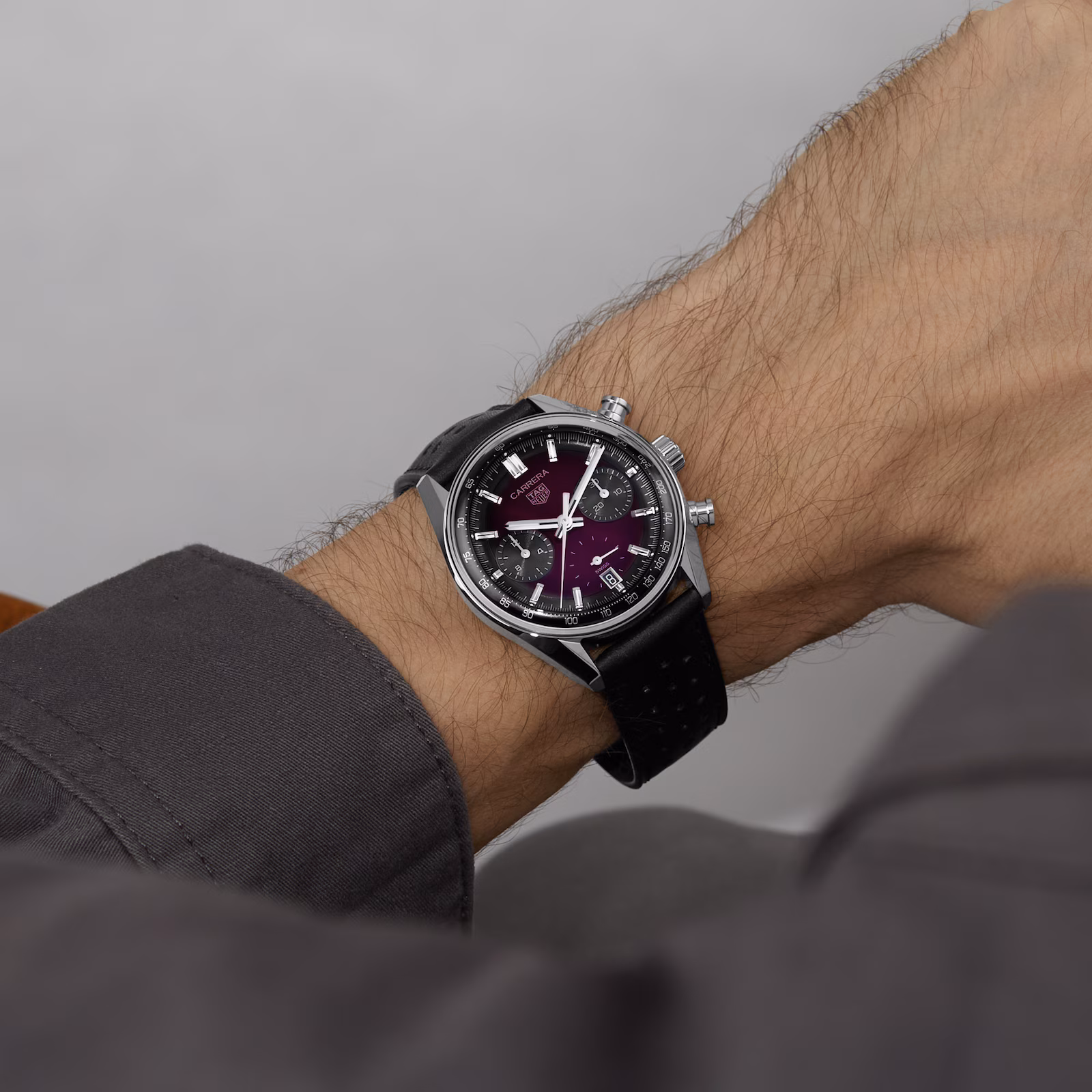 Elevate your style with the TAG Heuer Carrera Chronograph, where cutting-edge design meets vibrant colour. Featuring a striking smokey purple sunray brushed dial, this watch blends precision with elegance, creating a bold, unisex timepiece ready for any occasion.
