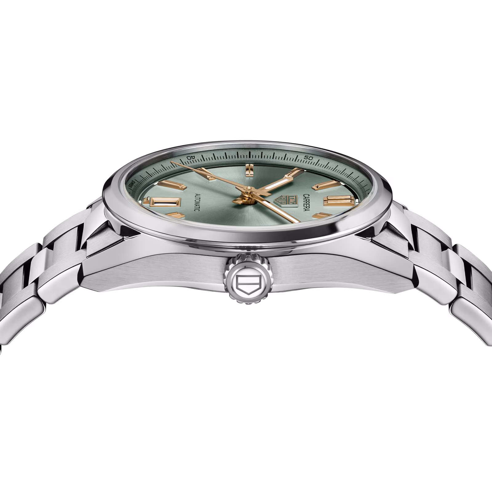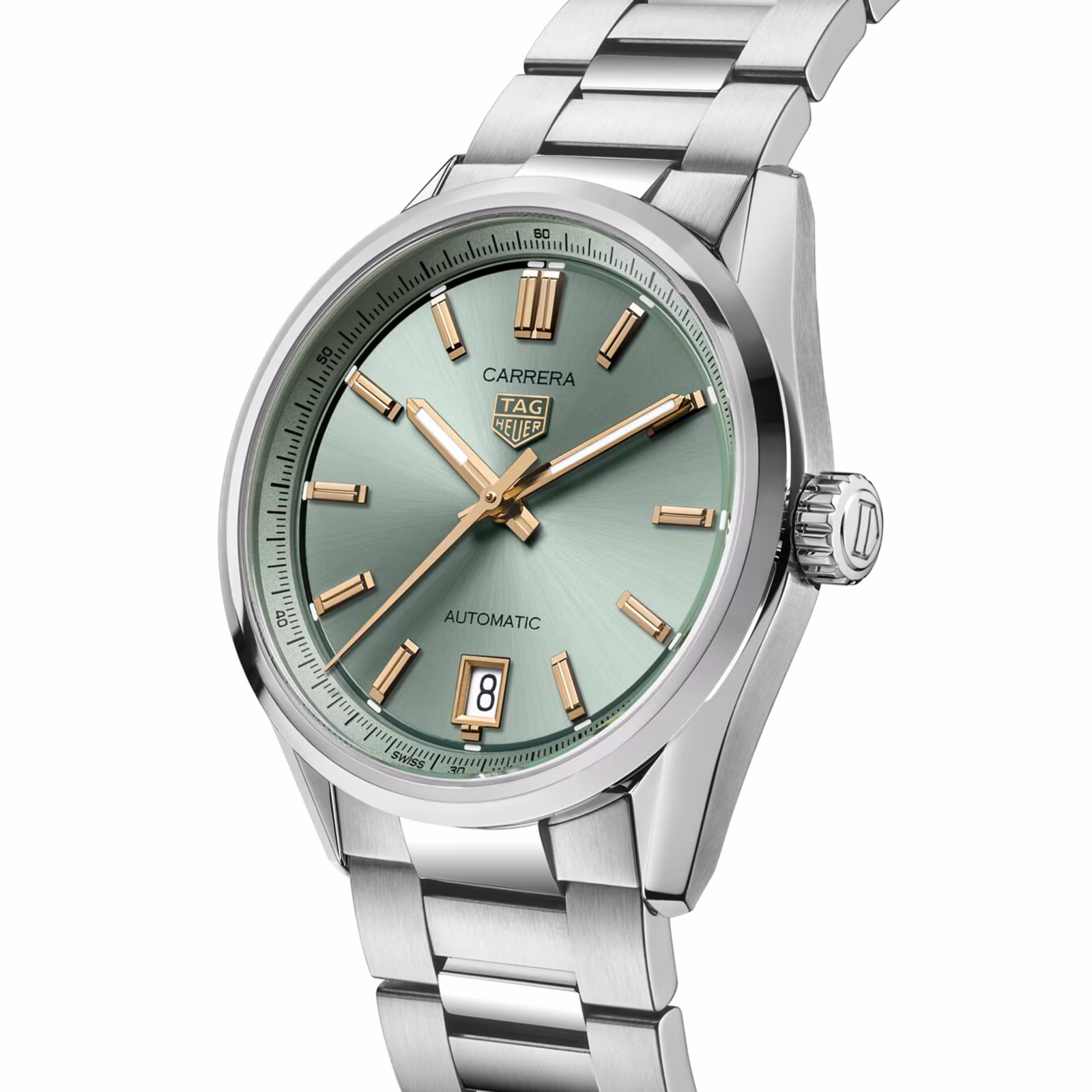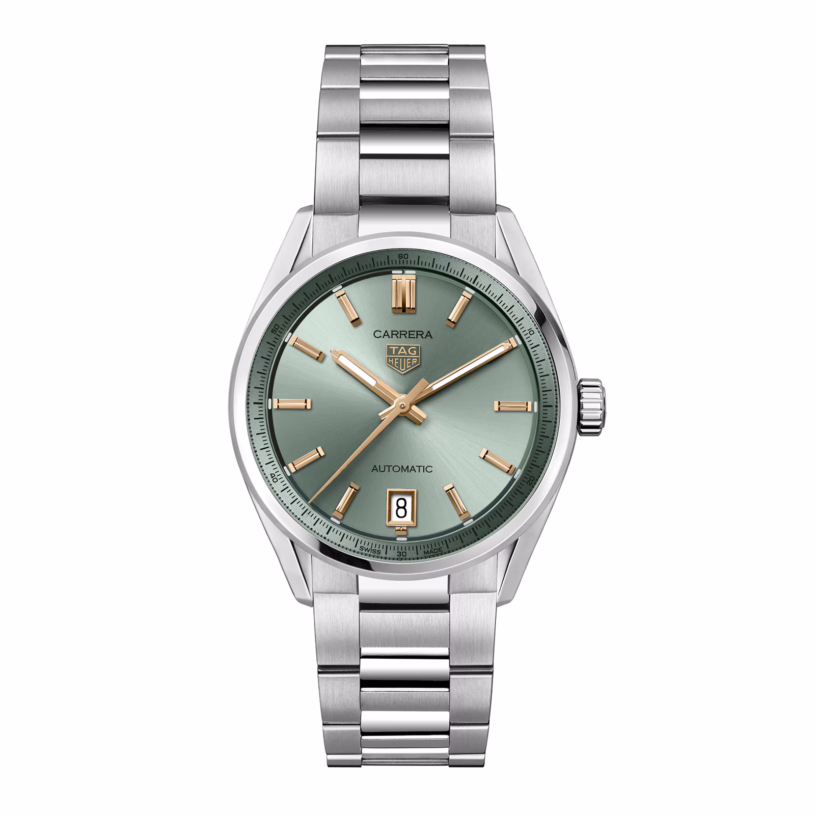 This Carrera Date model finds the perfect balance between elegance, comfort, and endurance, with a robust steel case elevated with prestigious details such as the dial’s charming pastel green and rose gold colour palette.