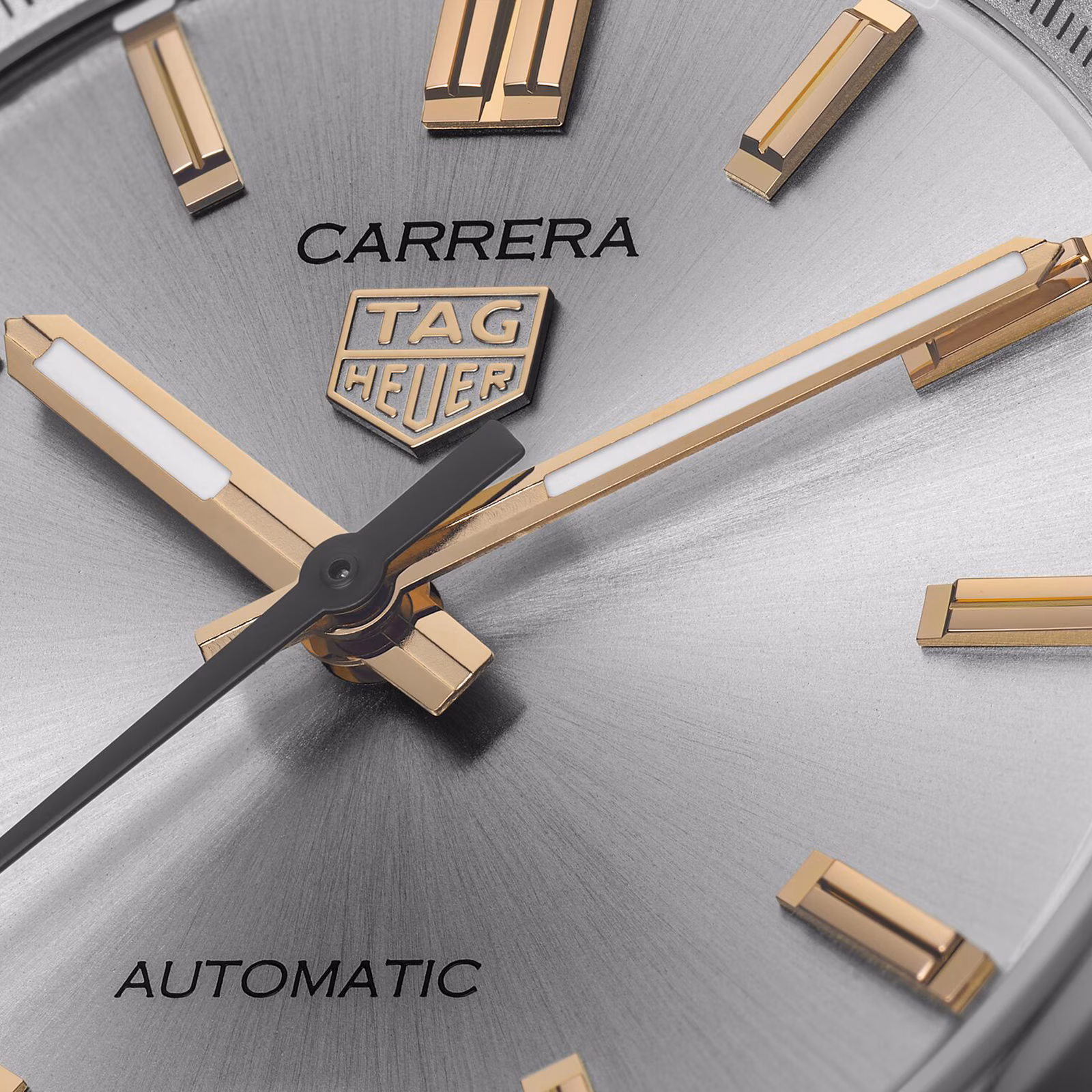 - Warm silver sunray dial with contrasting 18K 5N rose gold-plated hands and indexes