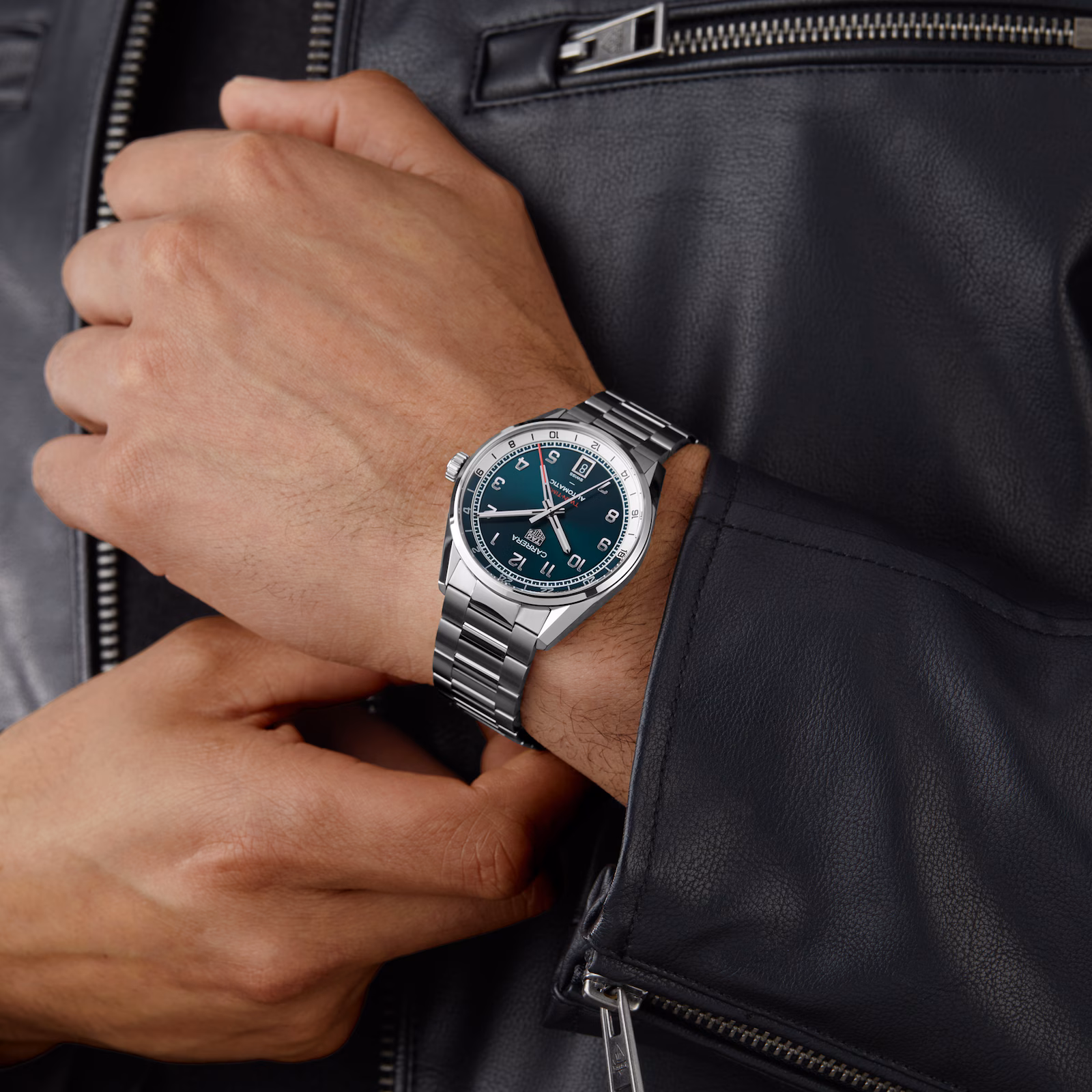 The TAG Heuer Carrera Date Twin-Time brings a timeless touch to the collection with its teal green dial and GMT complication. Featuring the TH31-03 movement and an 80-hour power reserve, this 41mm timepiece combines heritage-inspired details with modern precision. The caseback bears the symbolic engraved Victory Wreath, celebrating the TAG Heuer Carrera collection’s success story across decades.