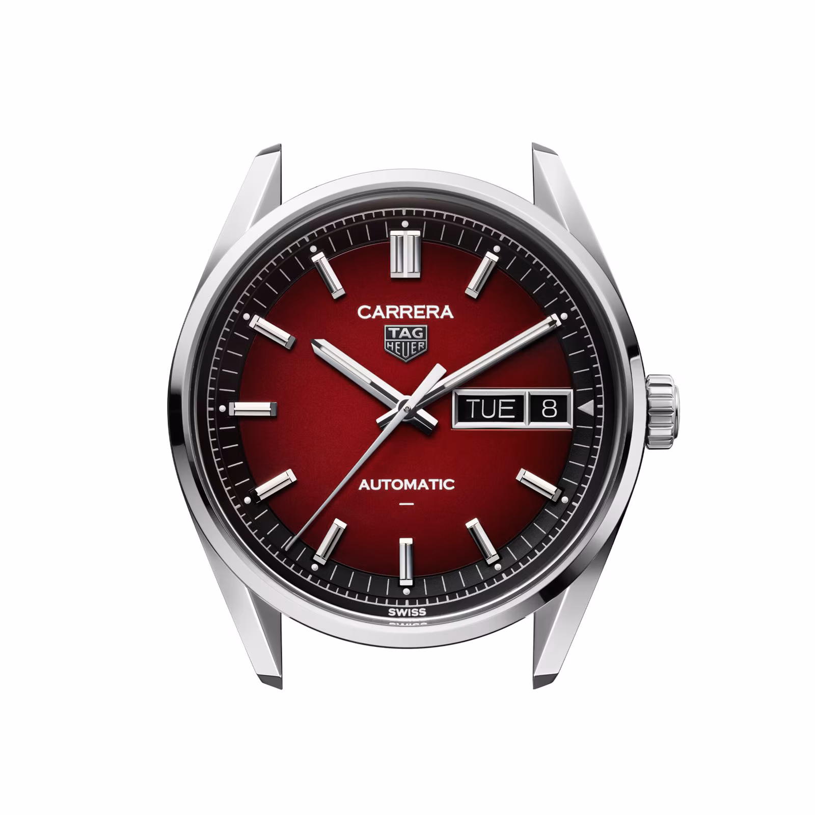 Add a bold touch to your collection with the TAG Heuer Carrera Day-Date in smokey red. The TH31-02 movement provides an 80-hour power reserve, while the eye-catching 41mm design features a striking opalin dial, polished H-bracelet, and practical day-date display, combining modern style with precision. On the caseback, the engraved Victory Wreath is a symbol of triumph.