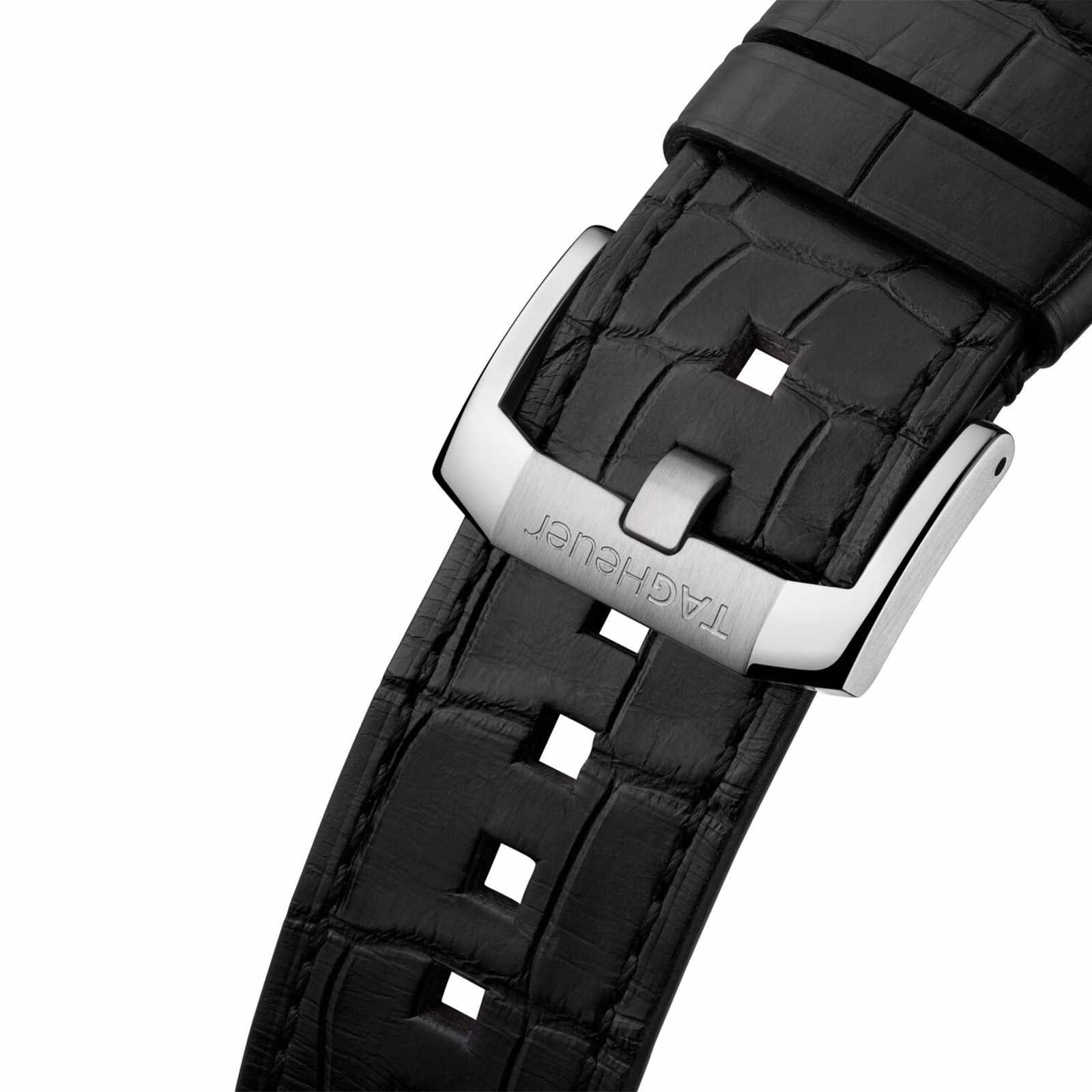 Pairing a 42mm stell case, with a black ceramic bidirectional bezel and a black alligator leather strap, this high performance model is instinctive and functional.
