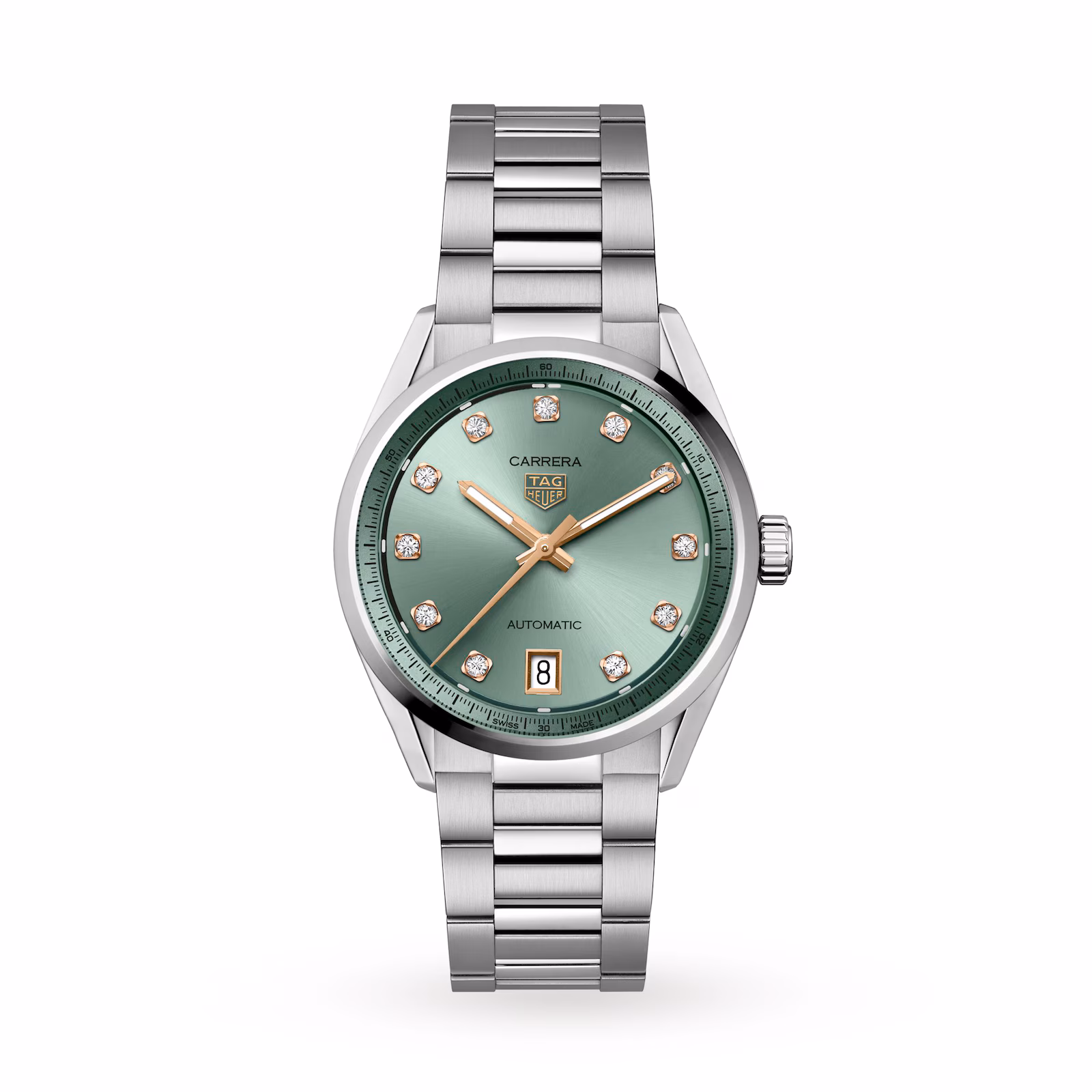 TAG Heuer Carrera Date 36mm Ladies Watch Green Diamond Dot WBN2317.BA0001
