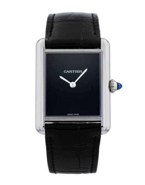 This Cartier Tank Must De Cartier WSTA0072 watch features a black dial and leather strap. This Cartier watch has undergone a comprehensive inspection for accuracy, functionality, and condition at our certified service center to determine the level of restoration required to meet our stringent standards. Furthermore, we have checked it against our records to ensure functionality. Our watches come with a 24-month warranty, providing peace of mind.